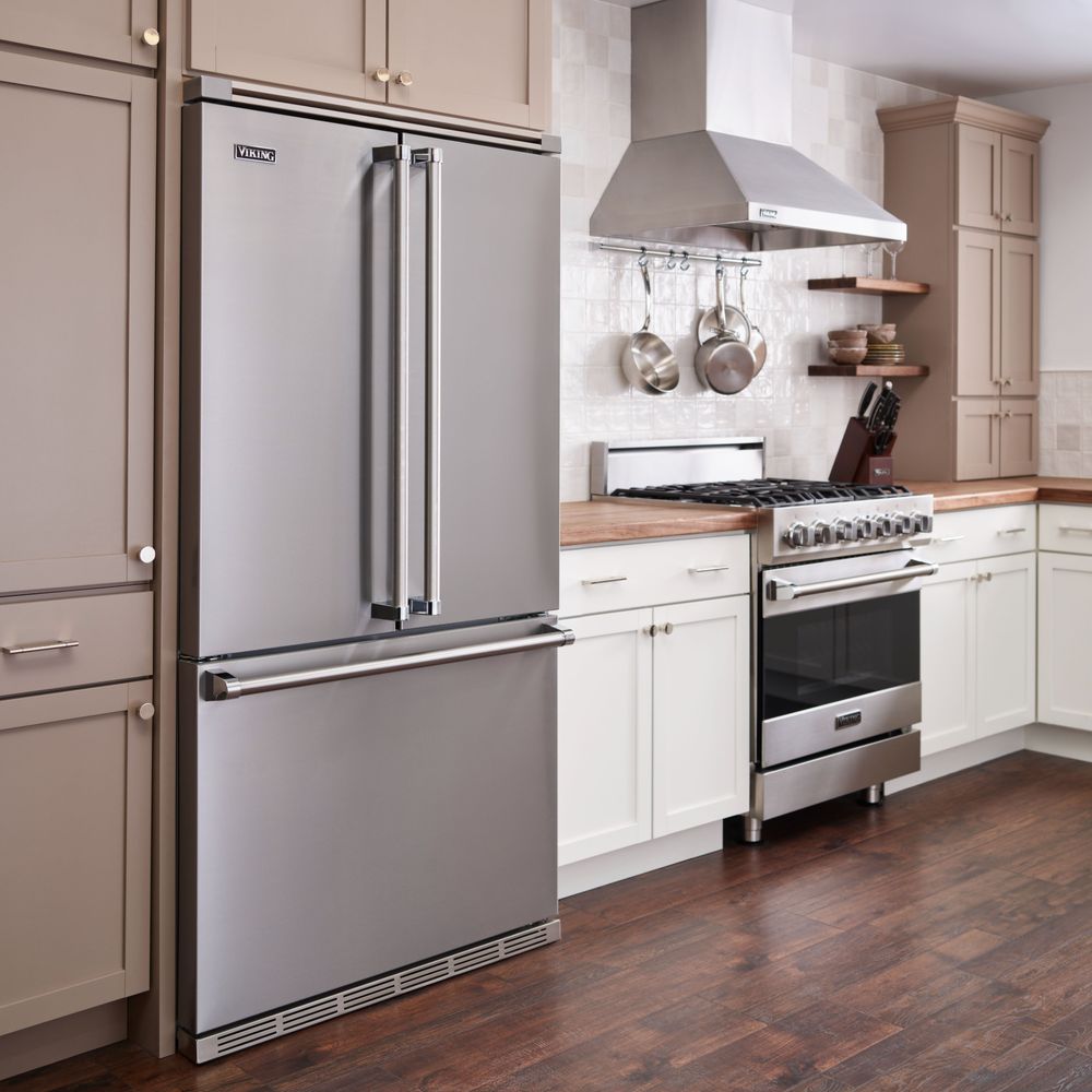 Viking 3 Series freestanding cabinet-depth refrigerators deliver professional performance into standard cutouts. At 36" wide and 24" deep, these models fit perfectly into your existing kitchen cabinetry – and they really make the space work with extra storage capacity and an array of ultra-premium features.