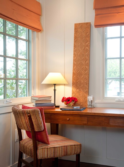 For the wife's office, the team commissioned this desk, which spans 9½ feet across the wall.