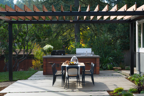 “There was a giant tree here, but it was dying and had to be removed,” Bovard says. “We replaced it with a trellis for shade. It also defines the space and makes it feel like an outdoor room.”