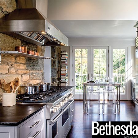 Neutral tones, stone walls, a gray Viking range and other Stainless Steel Viking Appliances make this kitchen warm and welcoming.