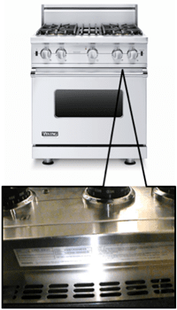 This recall involves Viking Range Freestanding 5 Series gas ranges, (models VGR and VGIC), manufactured between August 10, 2021 and December 1, 2021 and sold in stainless steel, white, and 14 other contemporary colors, which can be found at www.vikingincolor.com/the-contemporary-colors. The ranges were sold in various surface configurations including all burners or burners with griddle and/or grill. The model and serial numbers can be found on a label in one of three locations: On the left side panel under the left front grate support/ burner bowl, on the front of the oven cavity face frame below the control panel, on the bottom of the control panel above the door. Consumers should only search for the model and serial number when the range is not hot.